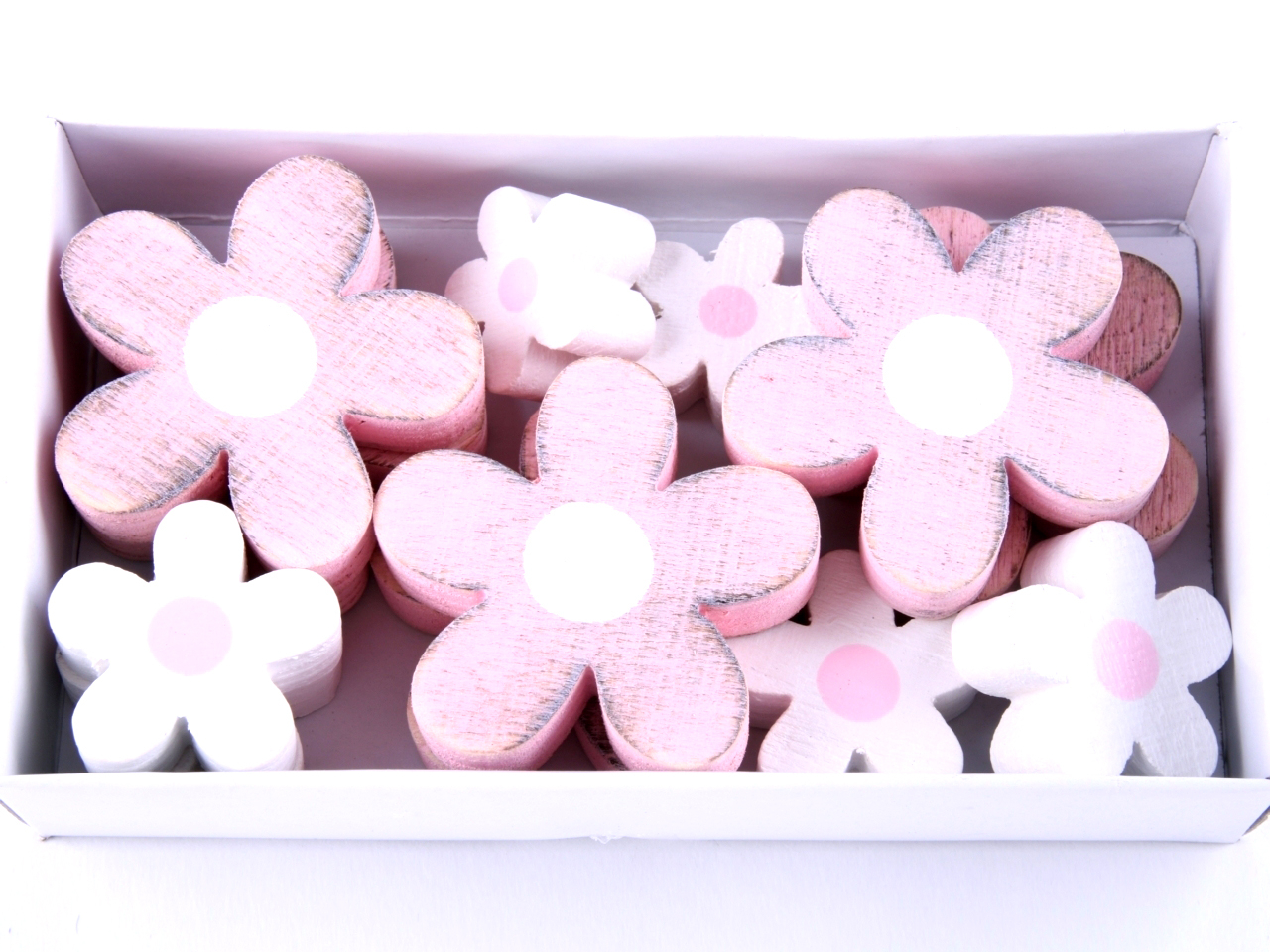 Blüten Holz Box 12 St weiss-rosa sort.