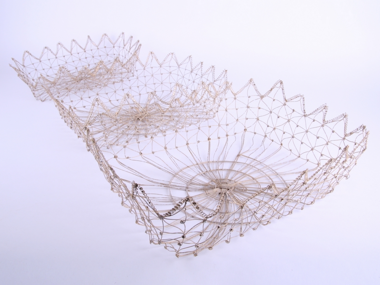 Drahtkorb rechteckig filigran Set3 Draht Messing whitewashed