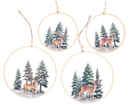 Hänger Loop Holz/Metall Druckmotiv Winterlandschaft Hirsch/Reh