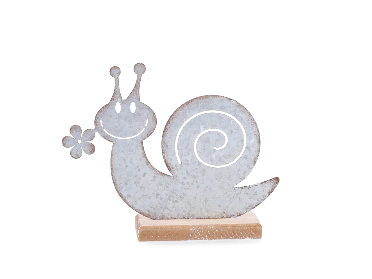 Schnecke Blech a Holzsockel z Stellen !! Aktionsartikel- Kein Umtausch / Rückgabe möglich !!