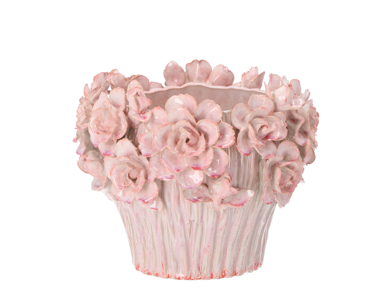 Topf Porzellan Blüten handgefertigt glasiert