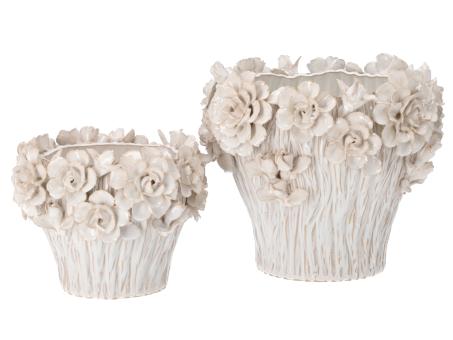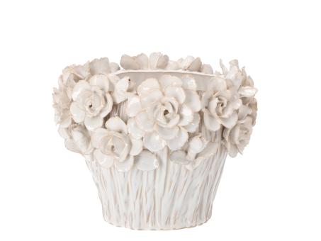 Topf Porzellan Blüten handgefertigt glasiert