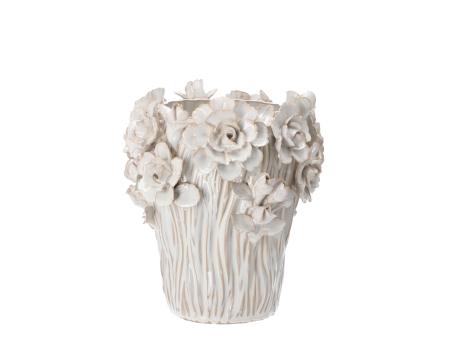 Vase Porzellan Blüten handgefertigt glasiert